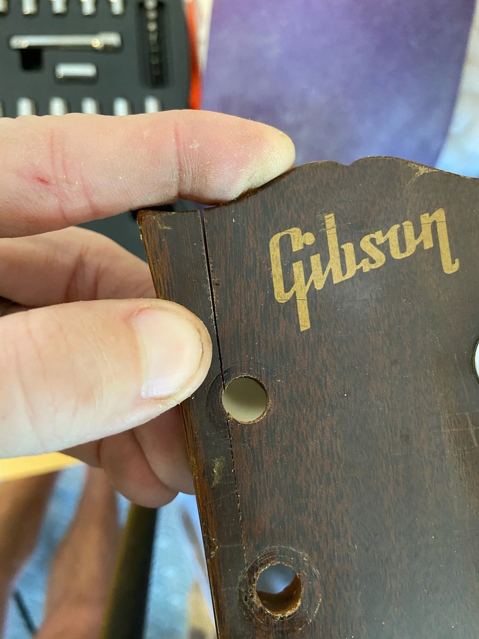Or.... nevermind. The wing of the headstock had come loose while installing the tuners & bushings. Didn't get a shot of it, but I slid some sandpaper in the gap and cleaned it up, then re-glued.